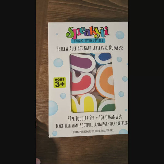 Hebrew Alef Bet Bath Letters & Numbers - 37pc Toddler Set + Toy Organizer
